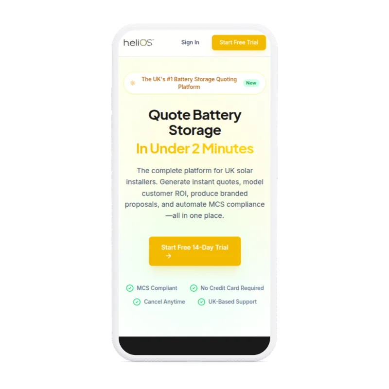 heliOS is a UK platform for solar installers to generate instant battery storage quotes and ROI proposals.